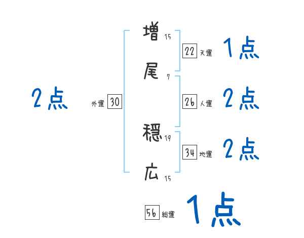 外運![]() | 増尾穏広さんの外運は30画の2つ星!浮き沈みの激しさに注意しましょう。 生活面を象徴する運勢です。外部から受ける影響力を表し、結婚運、家庭運や職場、環境への順応性を表します。 |