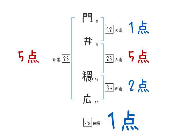 人運![]() | 門井穏広さんの人運は23画の5つ星!想像力に優れ活力がある。一代で成功し名誉を手に入れる。 性格や才能などを表す2番目に重要な運勢です。人間関係や協調性、社会的な成功に影響します。主に20歳から50歳ぐらいまでの中年期の運勢を表します。 |