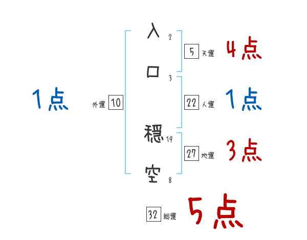 総運![]() | 入口穏空さんの総運は32画の5つ星!柔軟性があり成功する。チャンスが多く金運が良い。 あなたの人生を表す1番重要な運勢です。生涯を通じて影響する総合運となり、主に50歳以降の晩年期に影響を及ぼします。 |