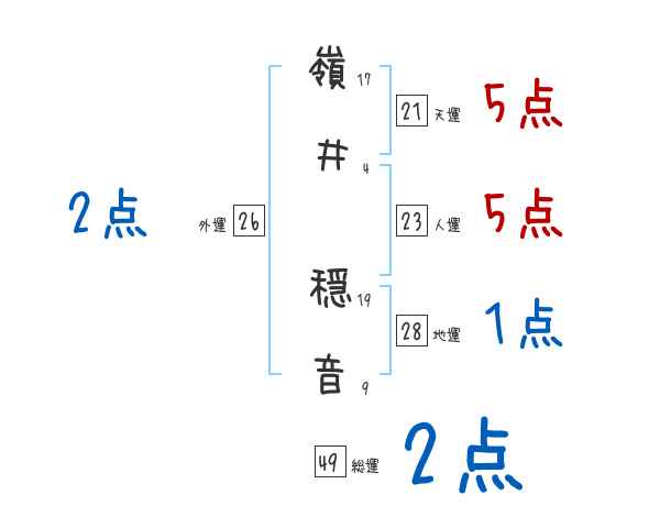 嶺井穏音さんの画数の鑑定結果