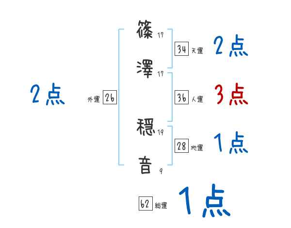 篠澤穏音さんの画数の鑑定結果