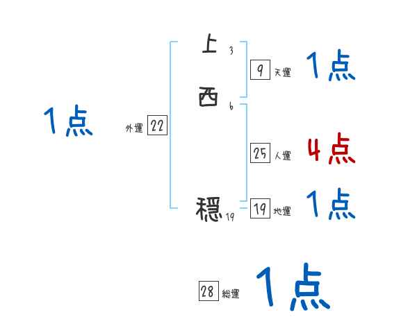 上西穏さんの画数の鑑定結果