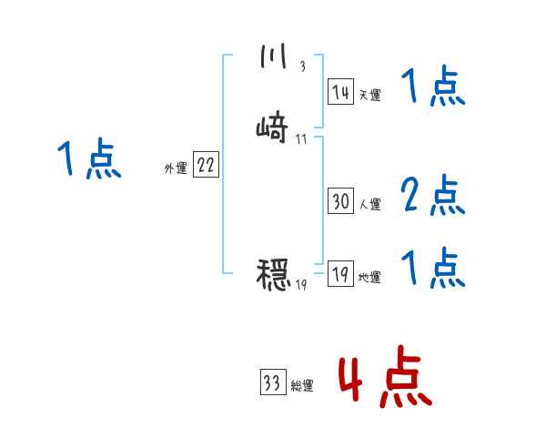 川﨑穏さんの画数の鑑定結果