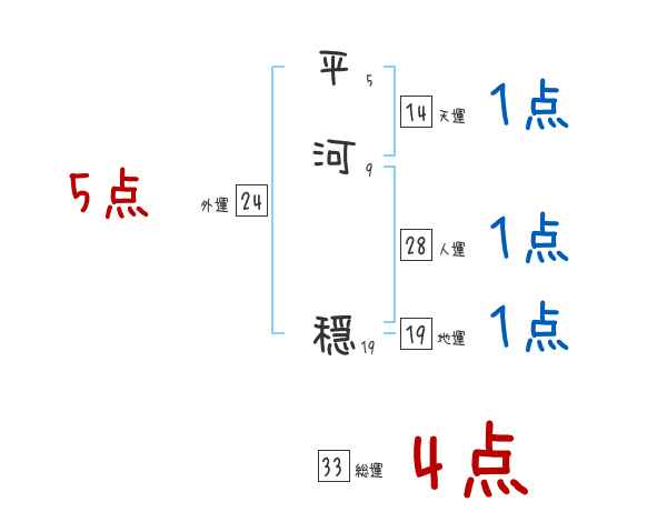 外運![]() | 平河穏さんの外運は24画の5つ星!家庭運が良く順調な人生。金運にも恵まれる。 生活面を象徴する運勢です。外部から受ける影響力を表し、結婚運、家庭運や職場、環境への順応性を表します。 |