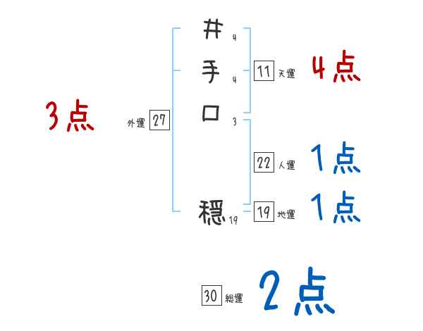 天運![]() | 井手口穏さんの天運は11画の4つ星!着実に富や地位を得る幸運な人生。 家系が持つ宿命的な運勢を表します。祖先から受け継いだ苗字ですので自分の力が及びません。家柄を象徴します。 |
