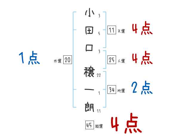 小田口穣一朗さんの画数の鑑定結果