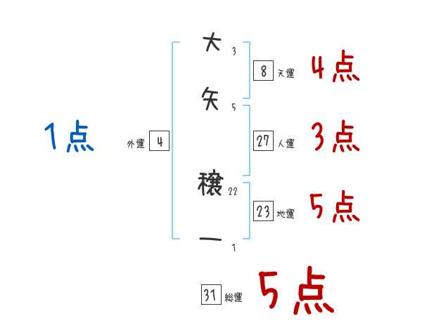 大矢穣一さんの画数の鑑定結果