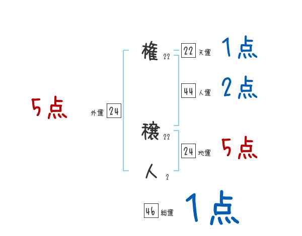 権穣人さんの画数の鑑定結果
