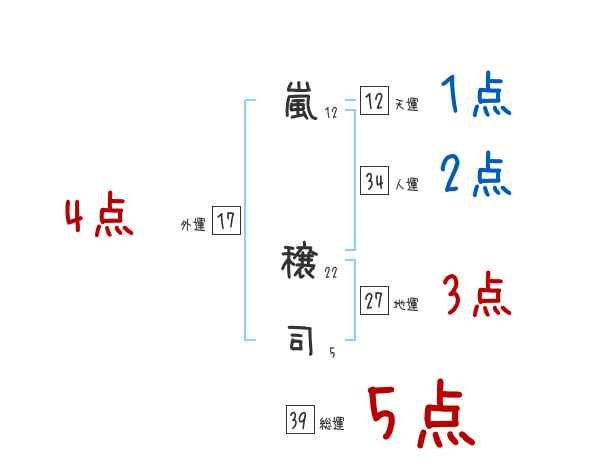 嵐穣司さんの画数の鑑定結果
