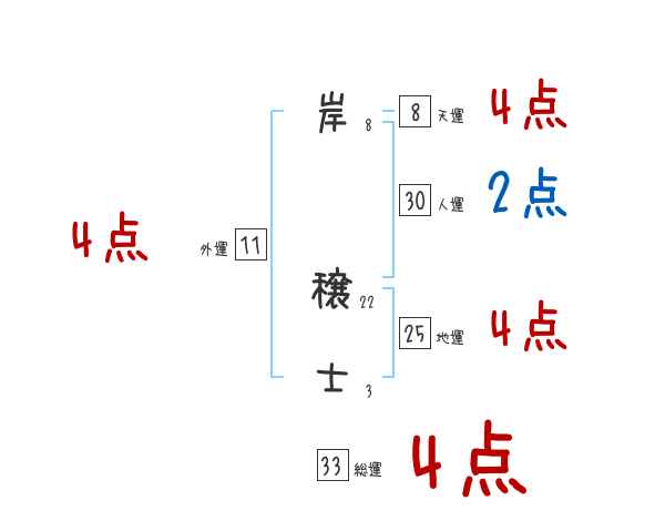 岸穣士さんの画数の鑑定結果