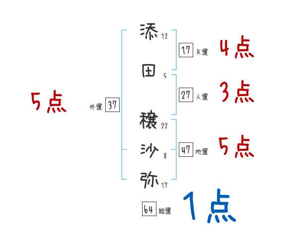 外運![]() | 添田穣沙弥さんの外運は37画の5つ星!努力家で順応性に優れる。現実的な考え方ができ忠実に物事をこなす。 生活面を象徴する運勢です。外部から受ける影響力を表し、結婚運、家庭運や職場、環境への順応性を表します。 |