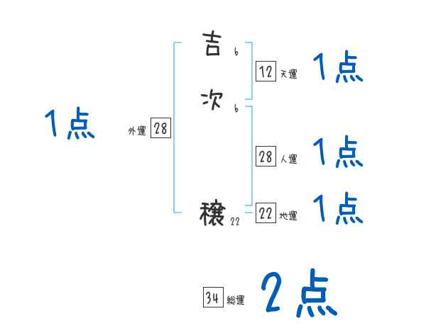 吉次穣さんの画数の鑑定結果