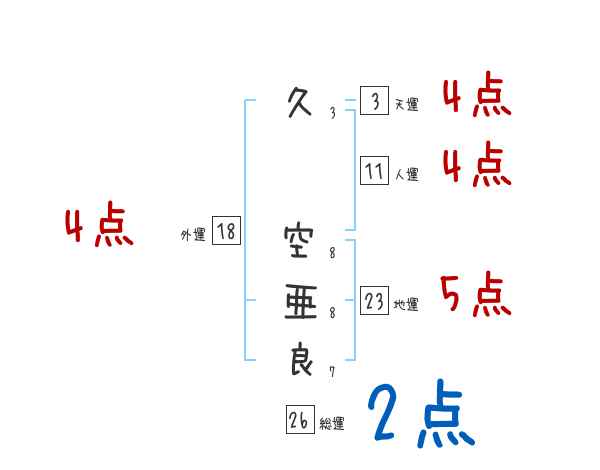 久空亜良さんの画数の鑑定結果