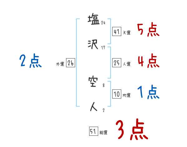 塩沢空人さんの画数の鑑定結果