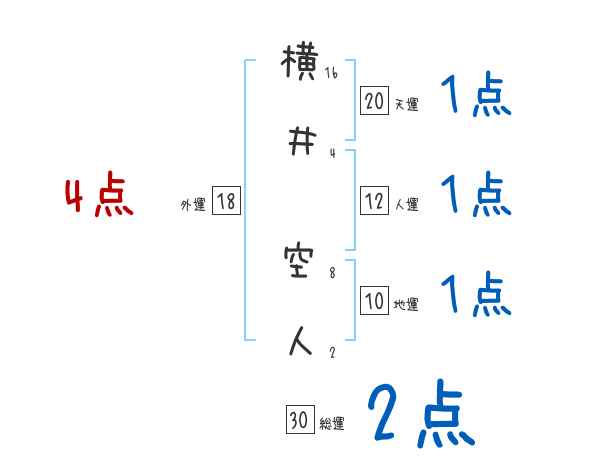 外運![]() | 横井空人さんの外運は18画の4つ星!情熱的で剛気。忍耐力があり信頼される。 生活面を象徴する運勢です。外部から受ける影響力を表し、結婚運、家庭運や職場、環境への順応性を表します。 |