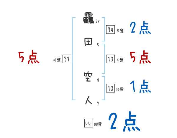 靏田空人さんの画数の鑑定結果