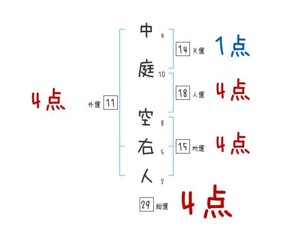 中庭空右人さんの画数の鑑定結果