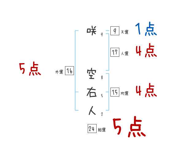 咲空右人さんの画数の鑑定結果