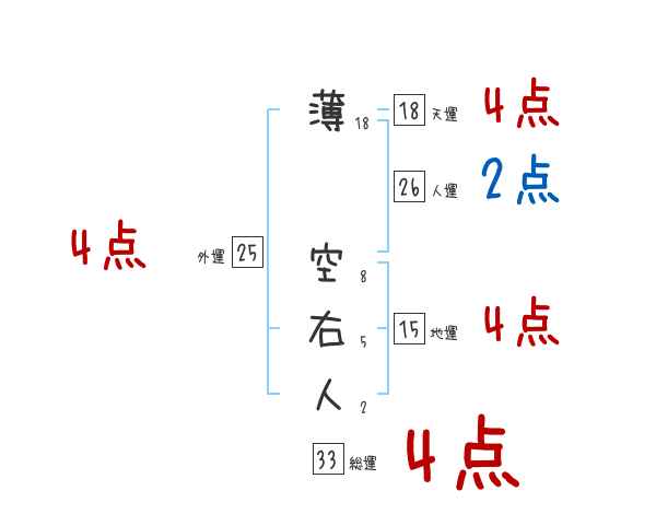 薄空右人さんの画数の鑑定結果