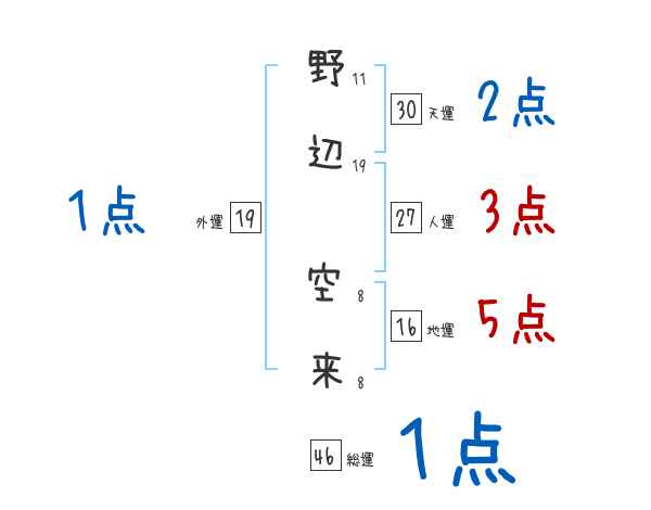 野辺空来さんの画数の鑑定結果