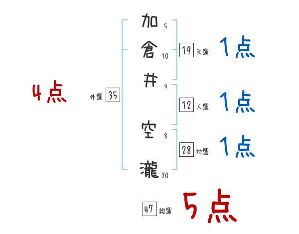 家系が持つ宿命的な運勢を表します。祖先から受け継いだ苗字ですので自分の力が及びません。家柄を象徴します。