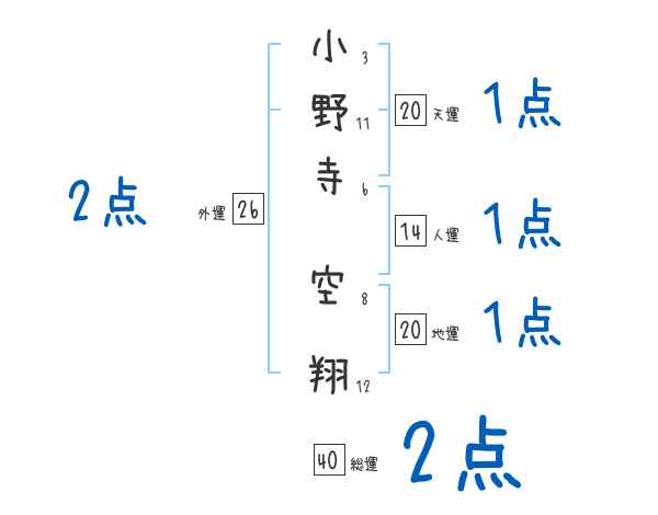 小野寺空翔さんの画数の鑑定結果