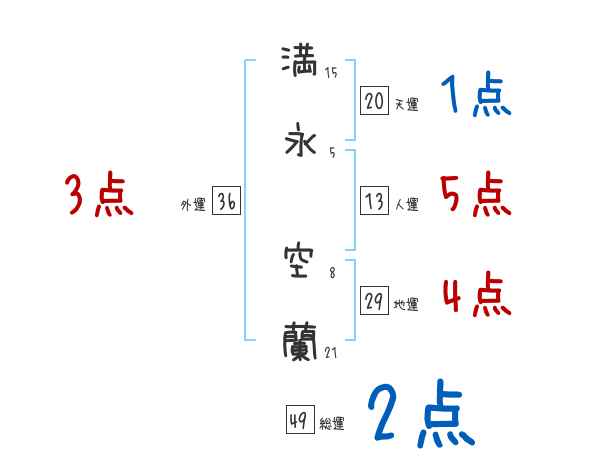 満永空蘭さんの画数の鑑定結果