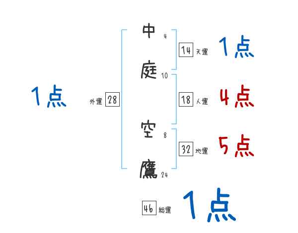 中庭空鷹さんの画数の鑑定結果