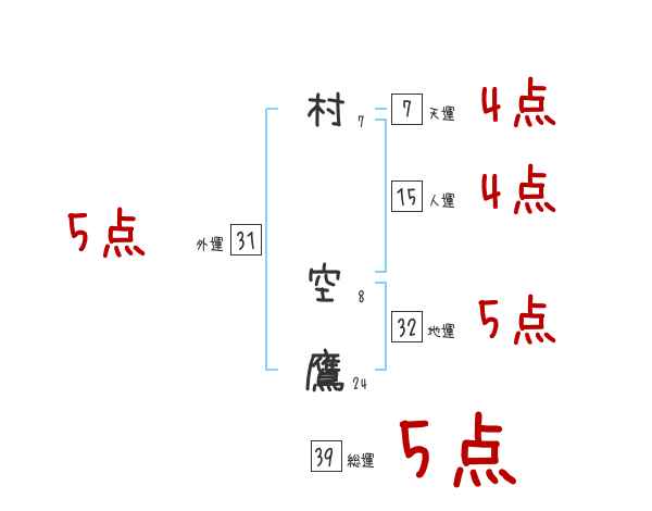 村空鷹さんの画数の鑑定結果