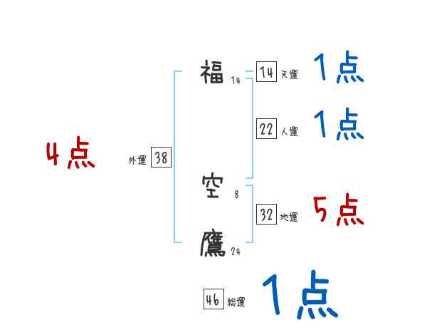 福空鷹さんの画数の鑑定結果