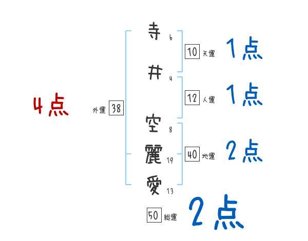 天運![]() | 寺井空麗愛さんの天運は10画の1つ星!不安を感じやすい傾向。ストレスを抱えないように注意しましょう。 家系が持つ宿命的な運勢を表します。祖先から受け継いだ苗字ですので自分の力が及びません。家柄を象徴します。 |