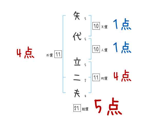 天運![]() | 矢代立二夫さんの天運は10画の1つ星!不安を感じやすい傾向。ストレスを抱えないように注意しましょう。 家系が持つ宿命的な運勢を表します。祖先から受け継いだ苗字ですので自分の力が及びません。家柄を象徴します。 |