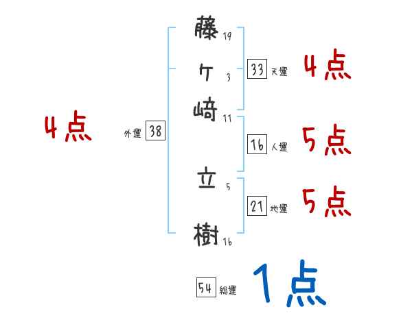 藤ヶ﨑立樹さんの画数の鑑定結果