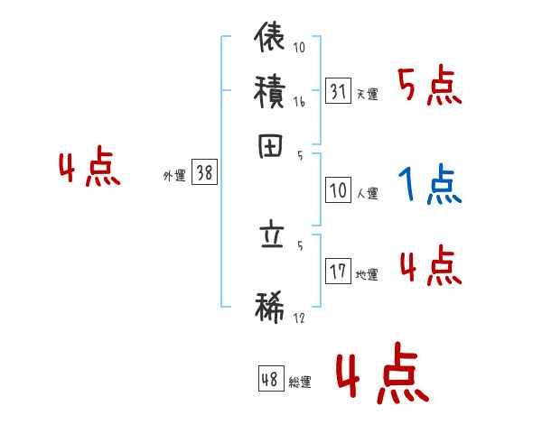 俵積田立稀さんの画数の鑑定結果