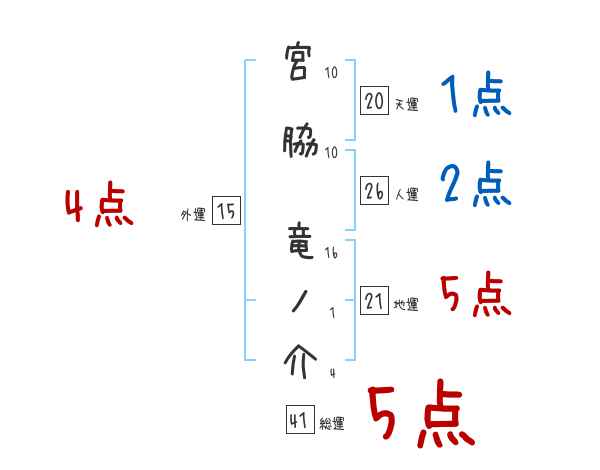 宮脇竜ノ介さんの画数の鑑定結果