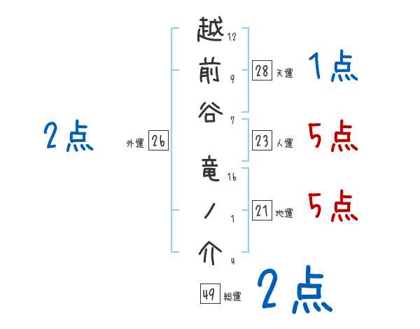 越前谷竜ノ介さんの画数の鑑定結果