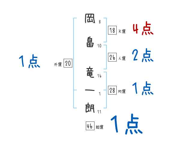 天運![]() | 岡畠竜一朗さんの天運は18画の4つ星!情熱的で剛気。忍耐力があり信頼される。 家系が持つ宿命的な運勢を表します。祖先から受け継いだ苗字ですので自分の力が及びません。家柄を象徴します。 |