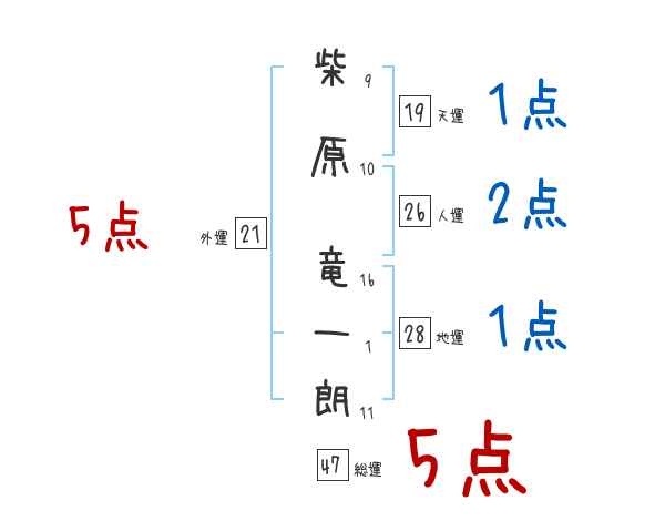 外運![]() | 柴原竜一朗さんの外運は21画の5つ星!統率力がある。独立し成功する。名誉を手に入れる。 生活面を象徴する運勢です。外部から受ける影響力を表し、結婚運、家庭運や職場、環境への順応性を表します。 |
