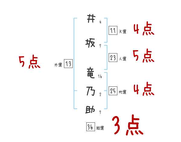 井坂竜乃助さんの画数の鑑定結果