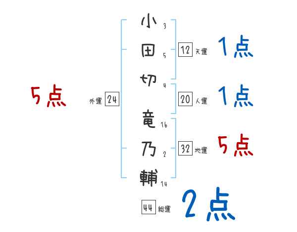 総運![]() | 小田切竜乃輔さんの総運は44画の2つ星!誠実で慎重な性格。物事を考えすぎないように注意しましょう。 あなたの人生を表す1番重要な運勢です。生涯を通じて影響する総合運となり、主に50歳以降の晩年期に影響を及ぼします。 |