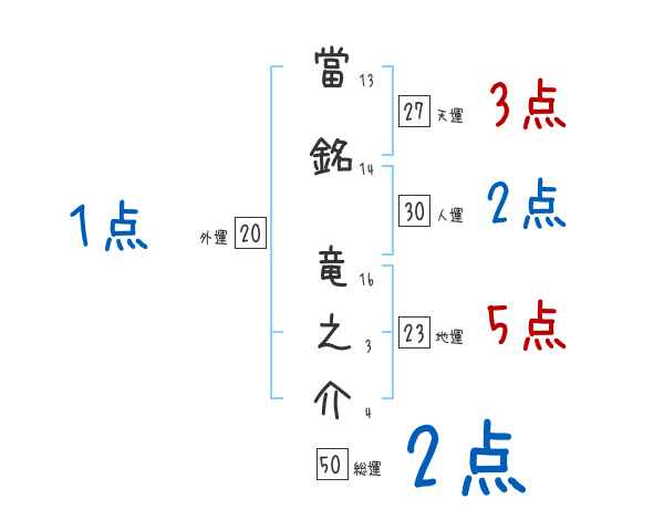 天運![]() | 當銘竜之介さんの天運は27画の3つ星!頭脳明晰だが強情で摩擦が多い傾向。孤立に注意。 家系が持つ宿命的な運勢を表します。祖先から受け継いだ苗字ですので自分の力が及びません。家柄を象徴します。 |