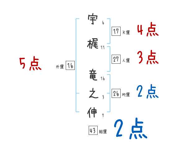 宇梶竜之伸さんの画数の鑑定結果
