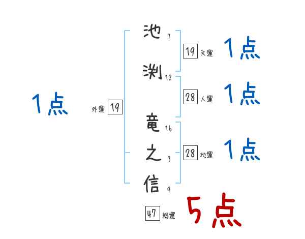 総運![]() | 池渕竜之信さんの総運は47画の5つ星!実力が開花し発展する円満な人生。財に恵まれる。 あなたの人生を表す1番重要な運勢です。生涯を通じて影響する総合運となり、主に50歳以降の晩年期に影響を及ぼします。 |
