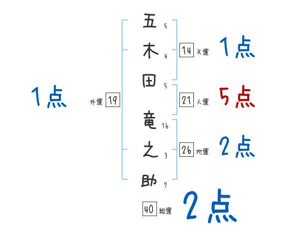 天運![]() | 五木田竜之助さんの天運は14画の1つ星!人に対して優しいがストレスを溜め込みがち。人間関係のトラブルを避けるよう気をつけましょう。 家系が持つ宿命的な運勢を表します。祖先から受け継いだ苗字ですので自分の力が及びません。家柄を象徴します。 |