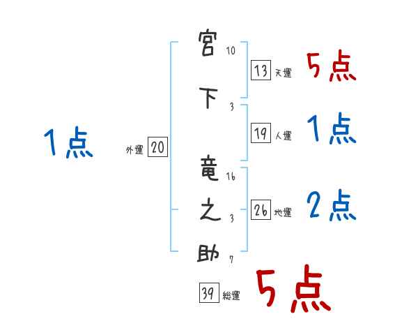宮下竜之助さんの画数の鑑定結果