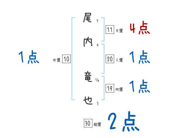 尾内竜也さんの画数の鑑定結果