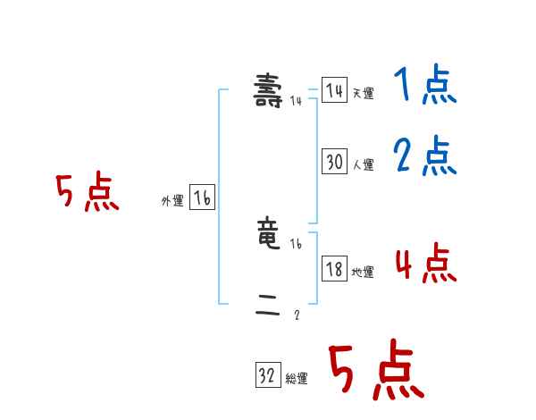 総運![]() | 壽竜二さんの総運は32画の5つ星!柔軟性があり成功する。チャンスが多く金運が良い。 あなたの人生を表す1番重要な運勢です。生涯を通じて影響する総合運となり、主に50歳以降の晩年期に影響を及ぼします。 |