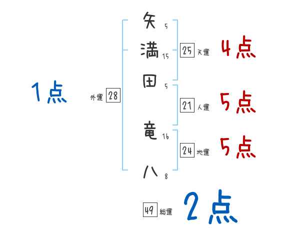矢満田竜八さんの画数の鑑定結果