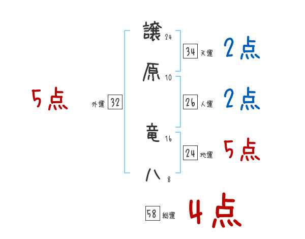 譲原竜八さんの画数の鑑定結果