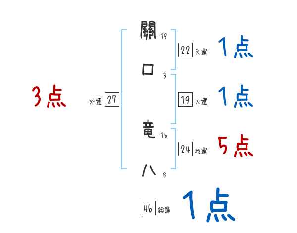 關口竜八さんの画数の鑑定結果
